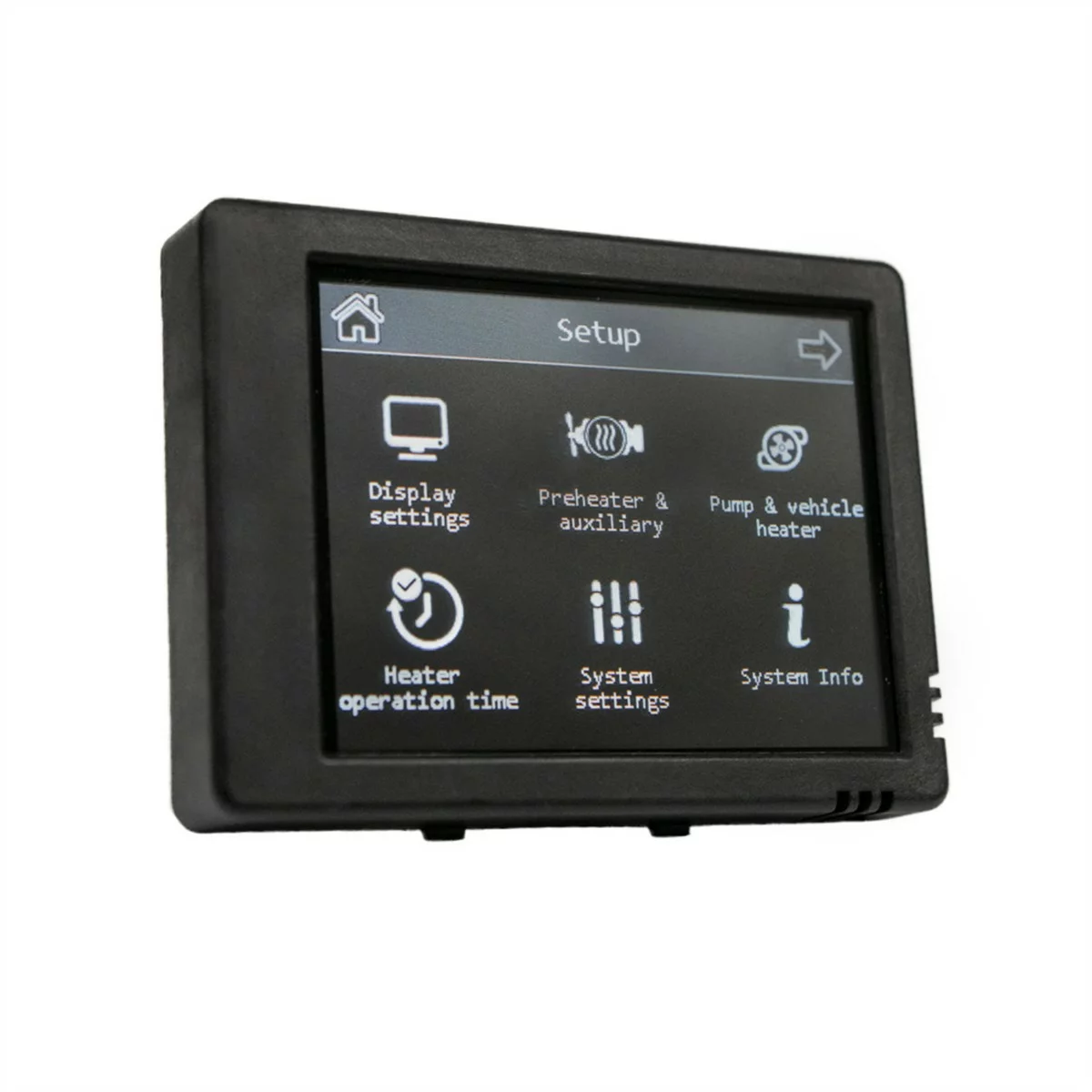 Wyposażony w czytelny ekran dotykowy o przekątnej 2.8 cala, oferuje wygodną obsługę, intuicyjne menu i elegancki design, idealnie dopasowany do wnętrza pojazdu, kampera, łodzi lub przyczepy.